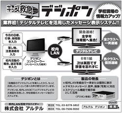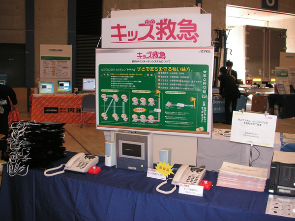 京都市、日立市、横浜市などの学校へ導入された校内LAN利用のキッズ救急、また枚方市の小学校1校で実証試験導入されたPLC(高速電力線通信)を利用したキッズ救急“コンセントdeネット”を、ご覧になれる絶好の機会となります。ご多用中とは存じますが、この機会に是非ご来場ください。